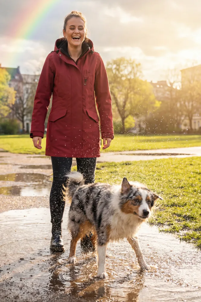 Aus einer kurzen Runde wurde ein kleines Abenteuer. Genau für diese Momente liebt sie ihn. Und genau für diese Momente braucht sie eine Jacke, die nicht empfindlich ist, sondern mitmacht. Damit sie sich auf das konzentrieren kann, was wirklich zählt:
